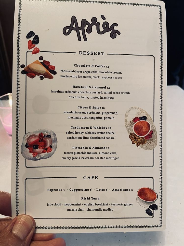 Succinctly crafted apple and cinnamon dessert. Option to share or select specific seating.